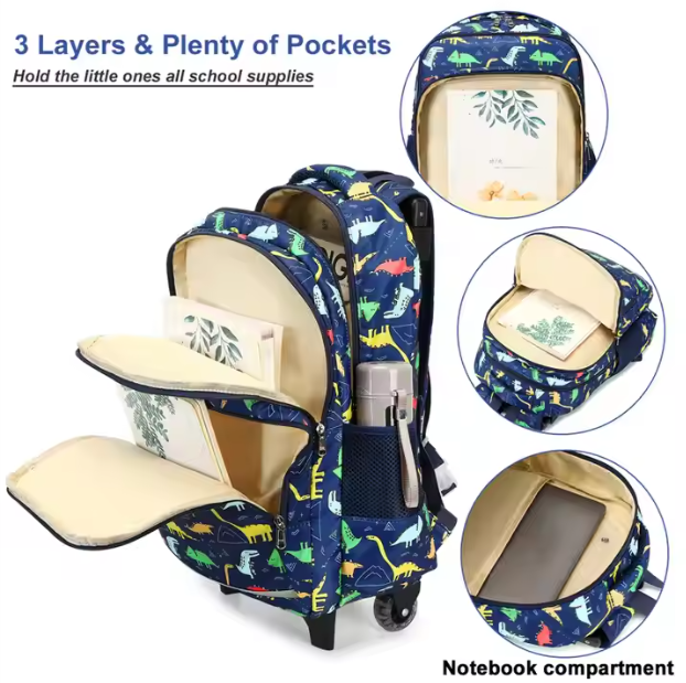 Custom logo dinosaur cartoon bookbag trolley children boys kids school backpack bag